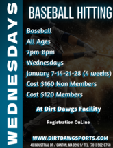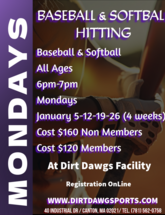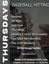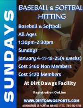 Dirt Dawg Sports is a premier baseball and softball training facility offering year-round indoor and outdoor top-notch professional baseball and softball instruction. Our Mission is to work with all players to instill, cultivate and nurture the love and passion that they have for the game. When we have achieved our mission this will be directly reflected in the players performance on the field, their commitment off the field and their sportsmanship on and off the diamond. We want to work with all local Baseball and Softball programs to help them achieve their goals as a Town, League or Team. We are committed to you!