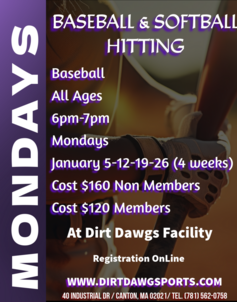 MONDAYS BASEBALL & SOFTBALL HITTING