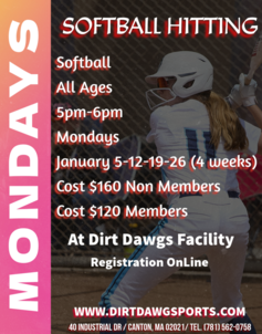 MONDAYS BASEBALL & SOFTBALL HITTING w/ALEX