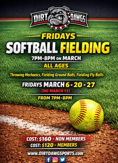 FRIDAYS SOFTBALL FIELDING 7PM-8PM